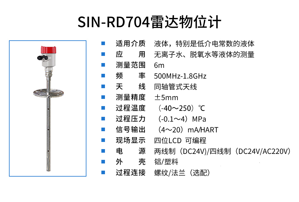 聯(lián)測(cè)_SIN-RD704雷達(dá)液位計(jì)_適用于無(wú)離子水、脫氧水等液體_