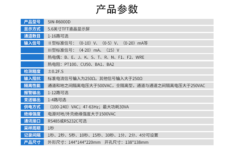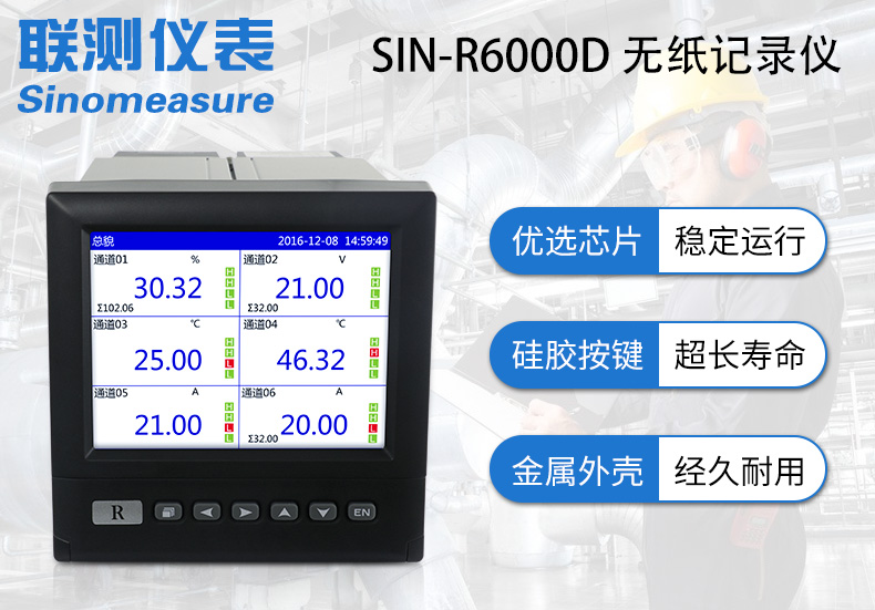 SIN-R6000D系列無紙記錄儀是一種高速高性能微處理器和5.6英寸彩色液晶顯示屏,對現場各種溫度、壓力、流量、電量等信號實現監測、控制和記錄功能。
