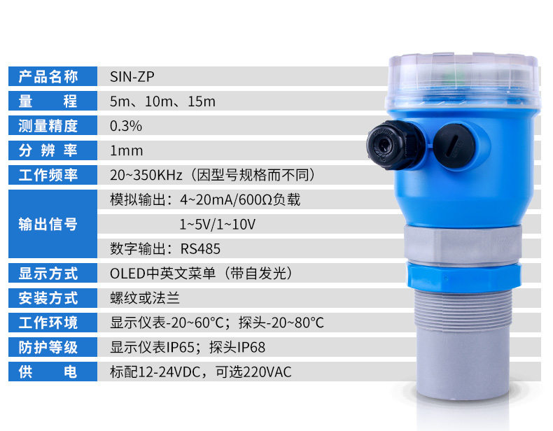 聯(lián)測(cè)_SIN-ZP_0.3%精度_超聲波液位計(jì)_罐體專用_